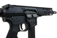 Starting from the front, the Marksman IX comes with a threaded 14mm CCW CNC aluminum outer barrel and a steel flash hider. It is equipped with a CNC aluminum 7.5-inch M-Lok handguard that features a Picatinny top rail, providing a monolithic Picatinny top rail for the entire rifle. The stock is a 5-position retractable AR15/M4 style stock that can be swapped out for various aftermarket AR15/M4 style stocks, allowing for customization.
